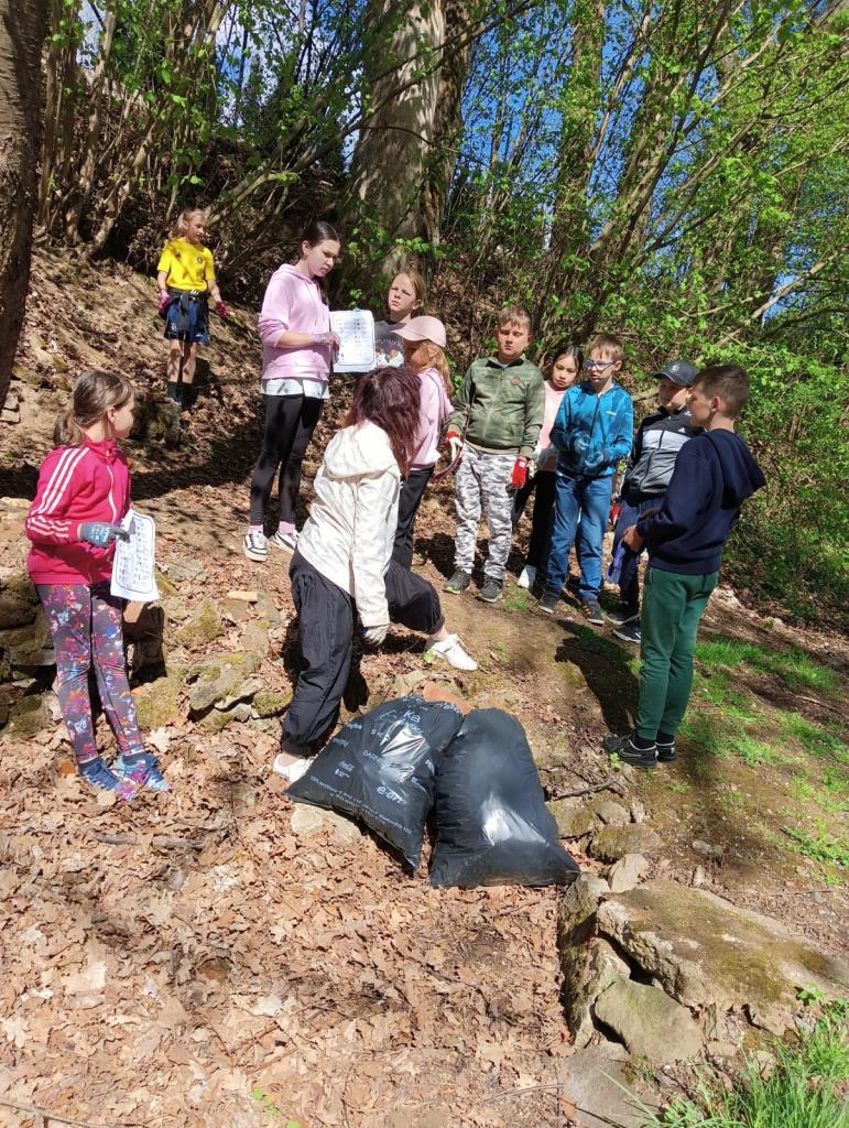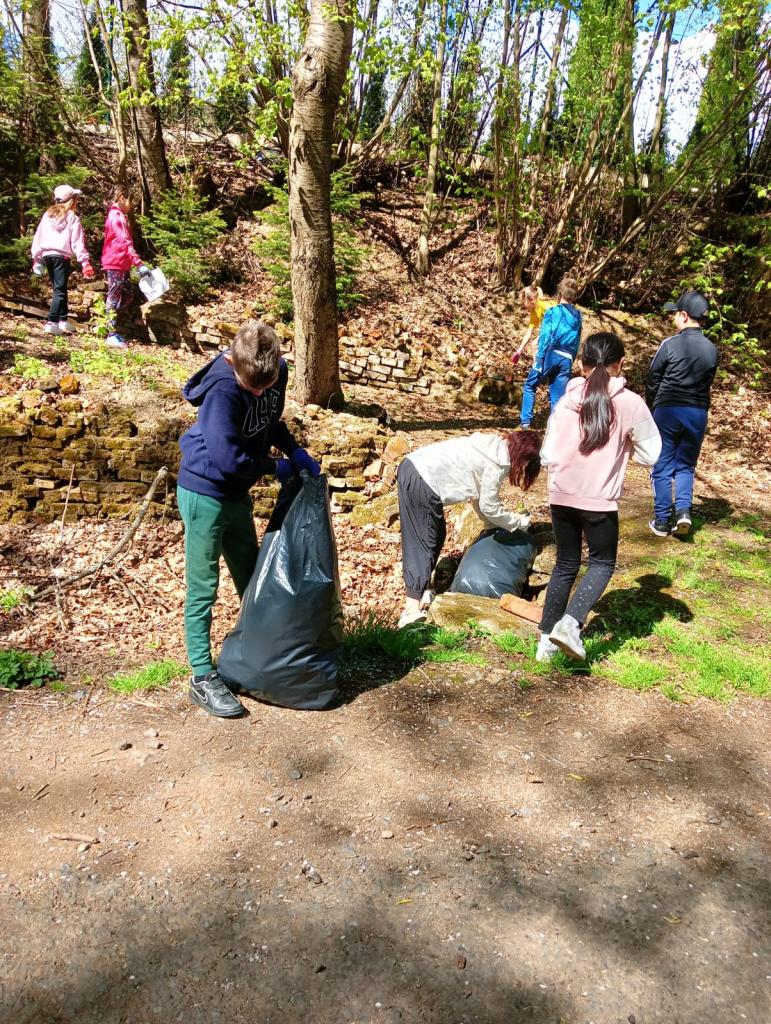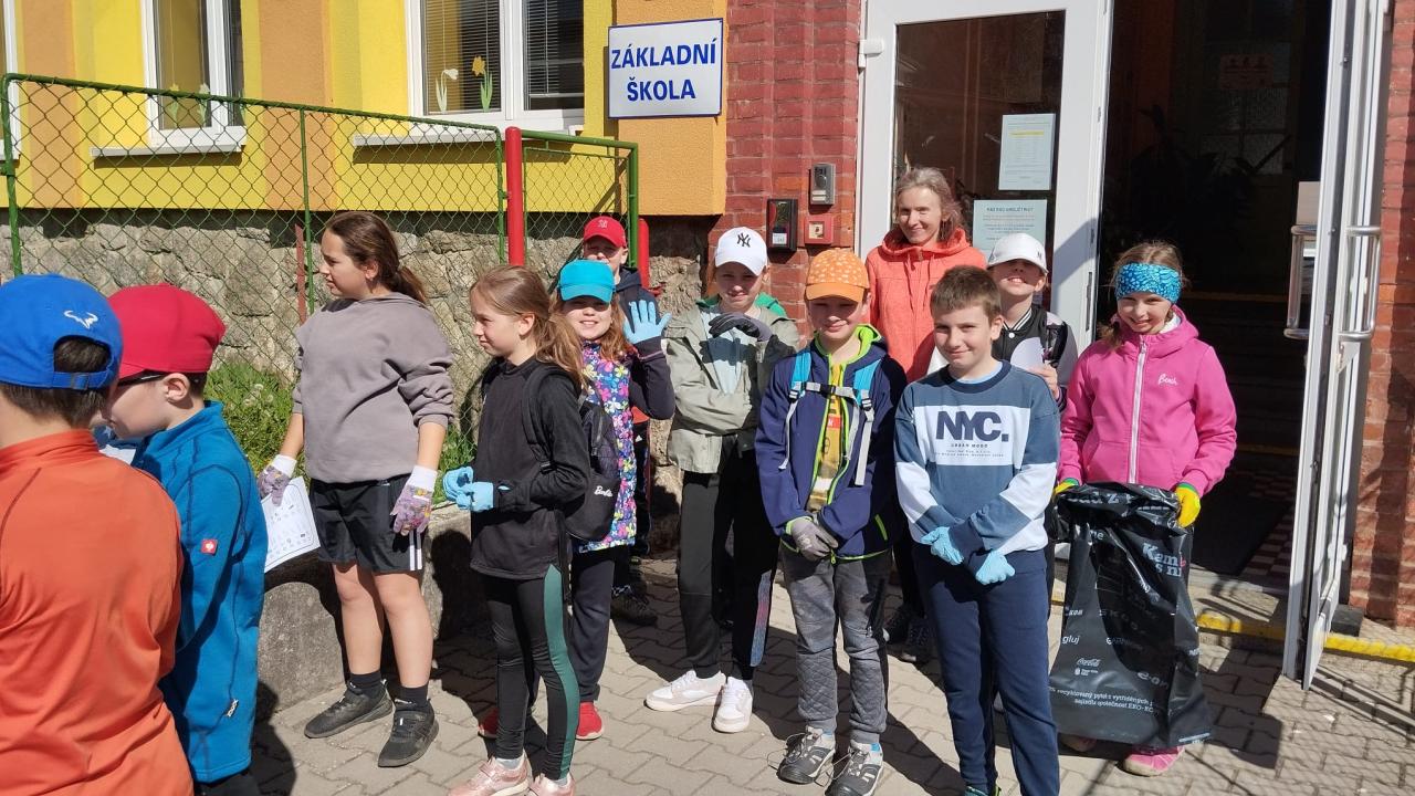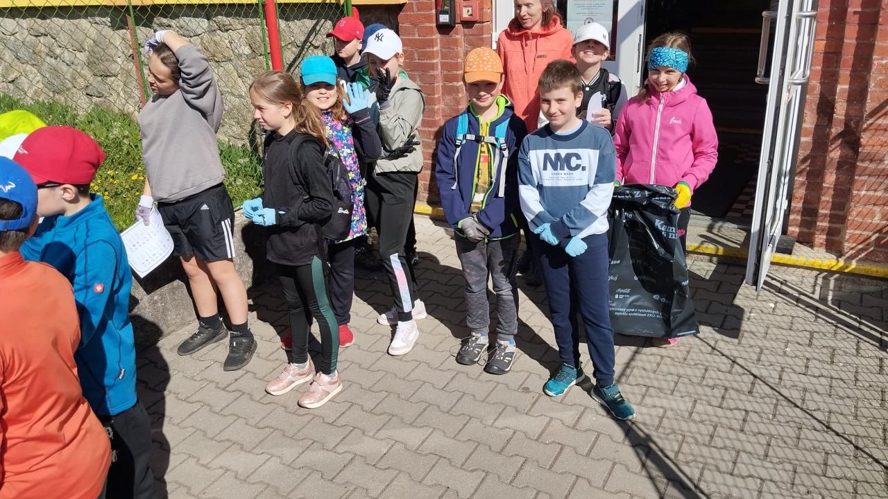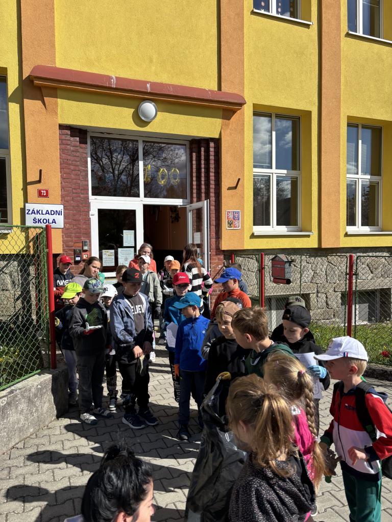 V deset hodin dopolene jsme se vydali uklidit okolí školy a Chodova. Každá třída měla určený rajón, který měla za úkol projít a posbírat nalezené odpadky. Od organizace Ukliďme Česko jsme dostali pytle na sběr a pro každého rukavice, díky čemuž se zachovala bezpečnost. Děti hledaly a sbíraly vše, co do přírody nepatří. Také měli seznam lovce odpadků, kam si zaznamenávali své nálezy. Mezi ně například patřili různé papíry, obaly od bonbonů, nedopalky od cigaret, plastové lahve, kapesníky a dokonce i eternit, telefon nebo stará zarostlá brusle.