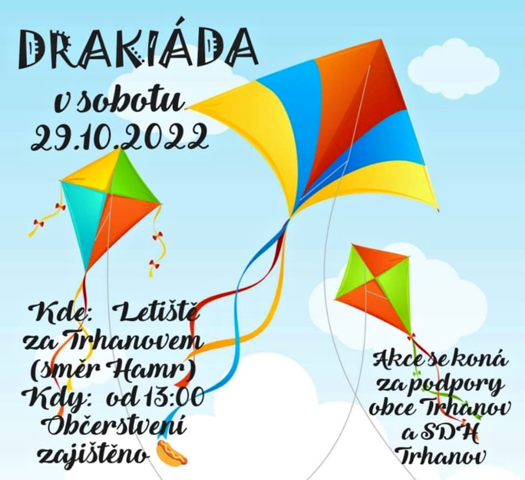Za podpory obce Trhanov a SDH Trhanov se v sobotu koná drakiáda. Pokud máte čas, vyrazte si s dětmi zalétat.